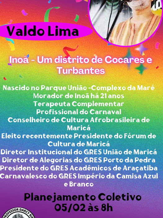 Ainda no terceiro dia de formação, tivemos em nossa Escola a presença especial de Valdo Lima, com a palestra "Inoã: Um distrito de Cocares e Turbantes".